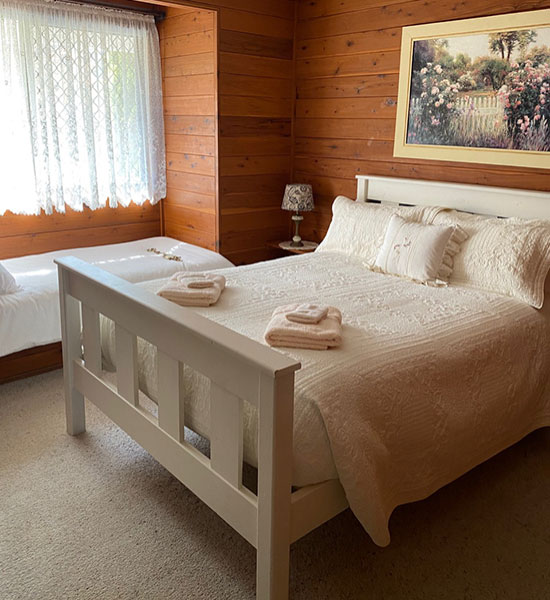Located in the main Homestead, the Raphael and Uriel Guest Rooms are beautifully styled with a French country feel. A queen size bed complete with electric blanket and a window seat single bed make this room a cosy getaway. The bathrooms are across the hall from the Guest Rooms.